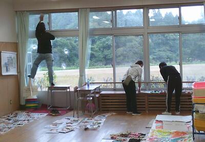 当日は、校庭の草刈りと学校内の清掃に分かれて作業を行いました。学校内は普段はできない窓ふきやドアの引戸周りの汚れとり、トイレ清掃などを中心に作業していただきました。