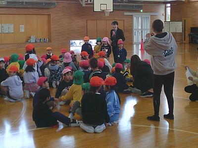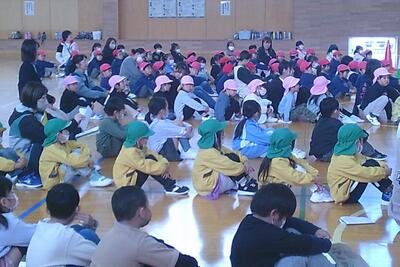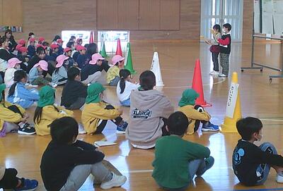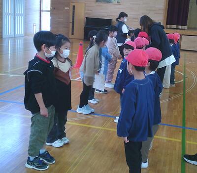10月28日(火)、本校の体育館において、来年度入学予定の園児の皆さんと1年生が交流する「萩荘地区なかよし交流会」を開催しました。