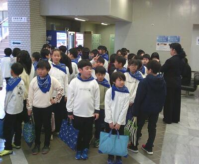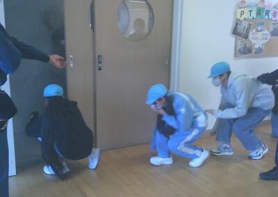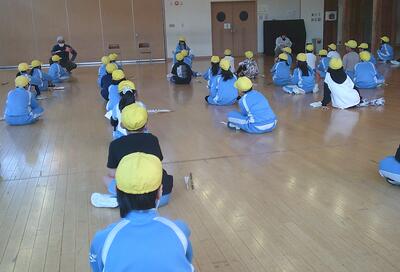 また、3年生と6年生は、「煙訓練」も行いました。煙の多さに驚いていましたが、姿勢を低くし、ハンカチで口元を押さえ、壁沿いに移動する体験を行うことができました。