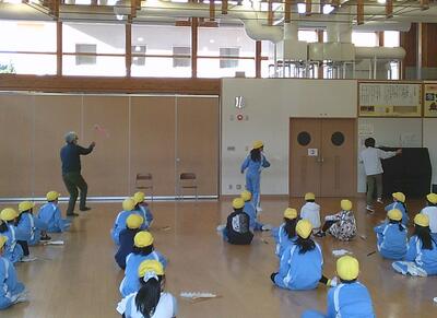 その後は、1年生が、学習発表会で披露した劇「くじらぐも」を発表しました。園児の皆さんからは、「楽しかった」「おもしろかった」との感想が出されました。