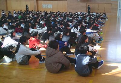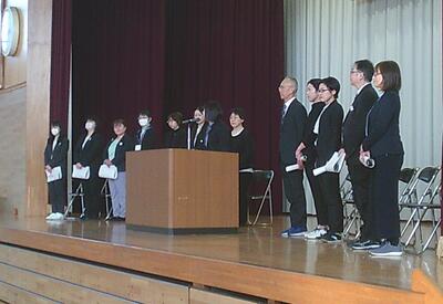 転任及び退職される先生方とのお別れの式、「離任式」を本校体育館で行いました。今年度は13人の教職員が対象となりました。