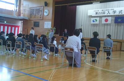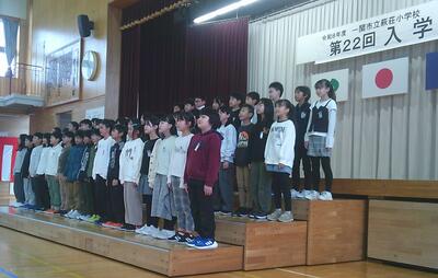 会の後半では、6年生が歓迎の意味を込めて、校歌を歌ってくれました。会場には保護者の皆様や来賓の方々、地域の方々など多くの方達に参加いただき、温かな雰囲気の中での入学式となりました。