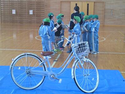 4月14日(火)、「交通安全教室」を行いました。3・5年生は、自転車のハンドルのみを教材とした実技指導、(前後方確認後の発進や一時停止、左右確認など)の指導を受けながらコースに分かれ実際に歩きながら活動しました。